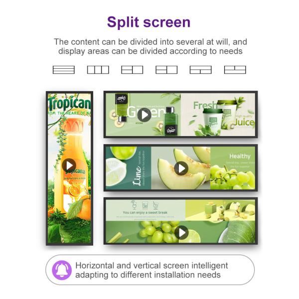 You can display your Bar LCD display ads horizontally or vertically according to the actual situation, which can adapt to your different installation needs.
